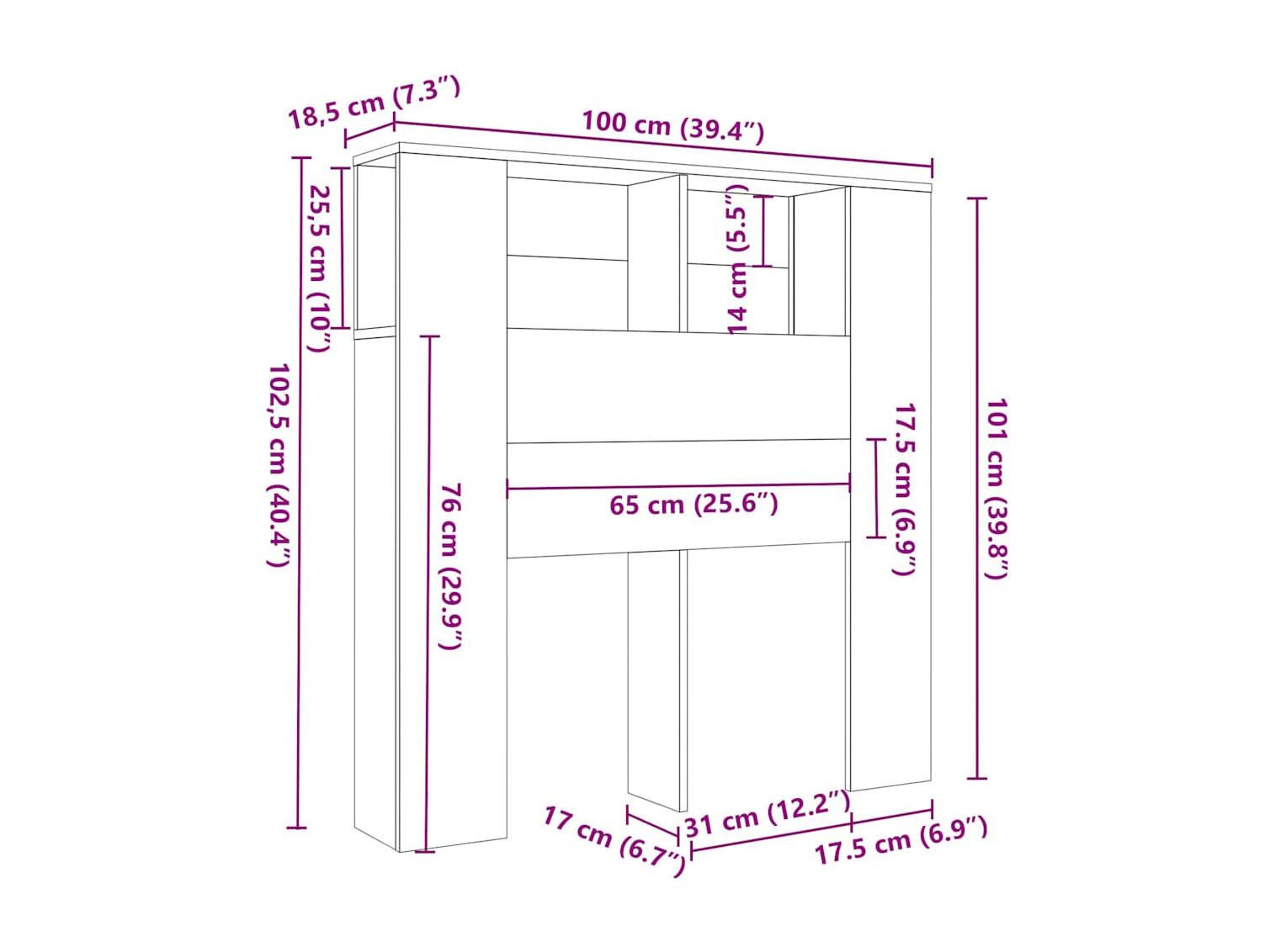Tête de Lit de rangement | Panneau de tête pour lit Chêne fumé 75 cm Bois d'ingénierie