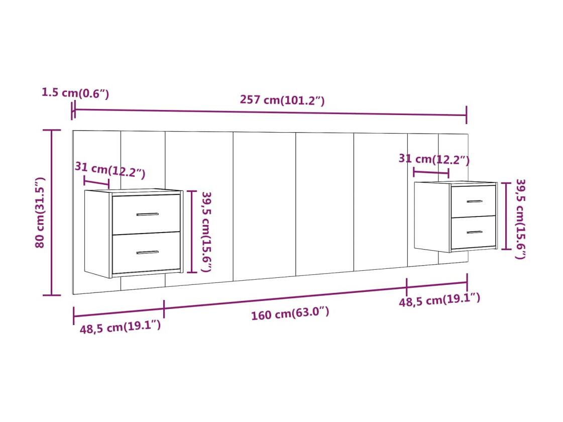 • Dimensions de la tête de lit : 160 x 1,5 x 80 cm (L x l x H)