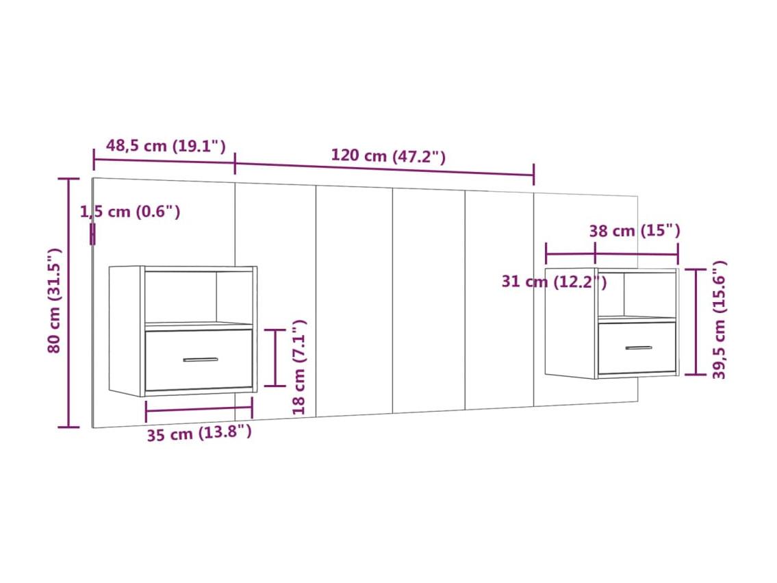 Tête de Lit avec rangement | Tête de lit avec armoires Chêne fumé Bois d'ingénierie