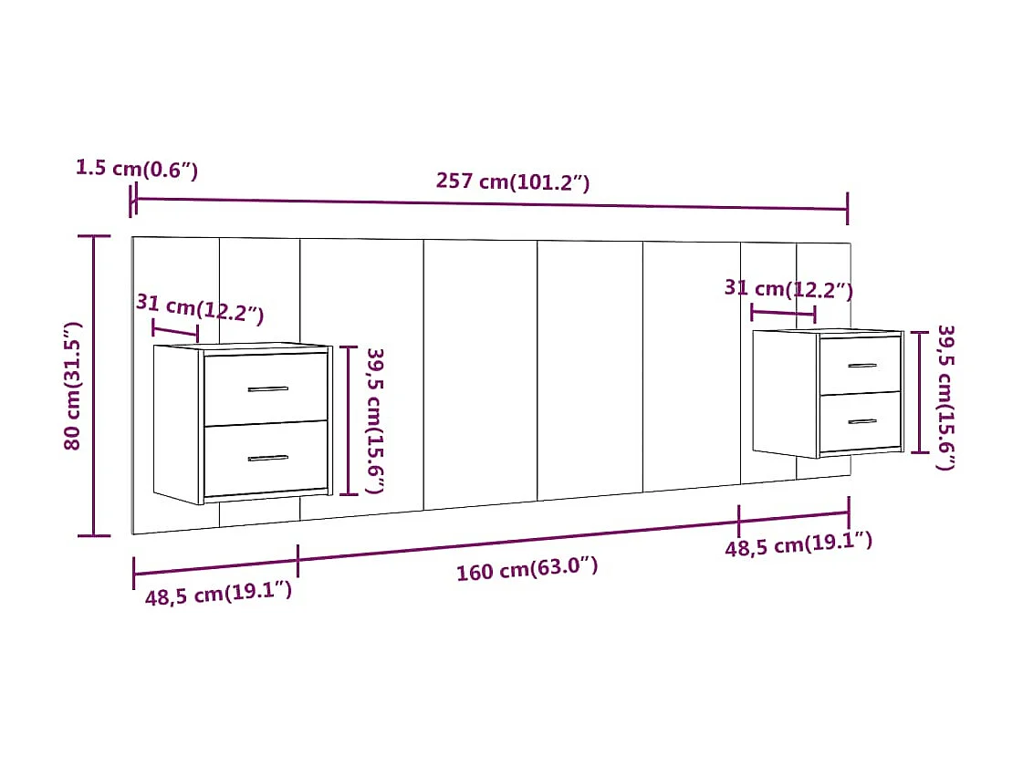Tête de Lit avec rangement | Tête de lit avec armoires Chêne sonoma Bois d'ingénierie