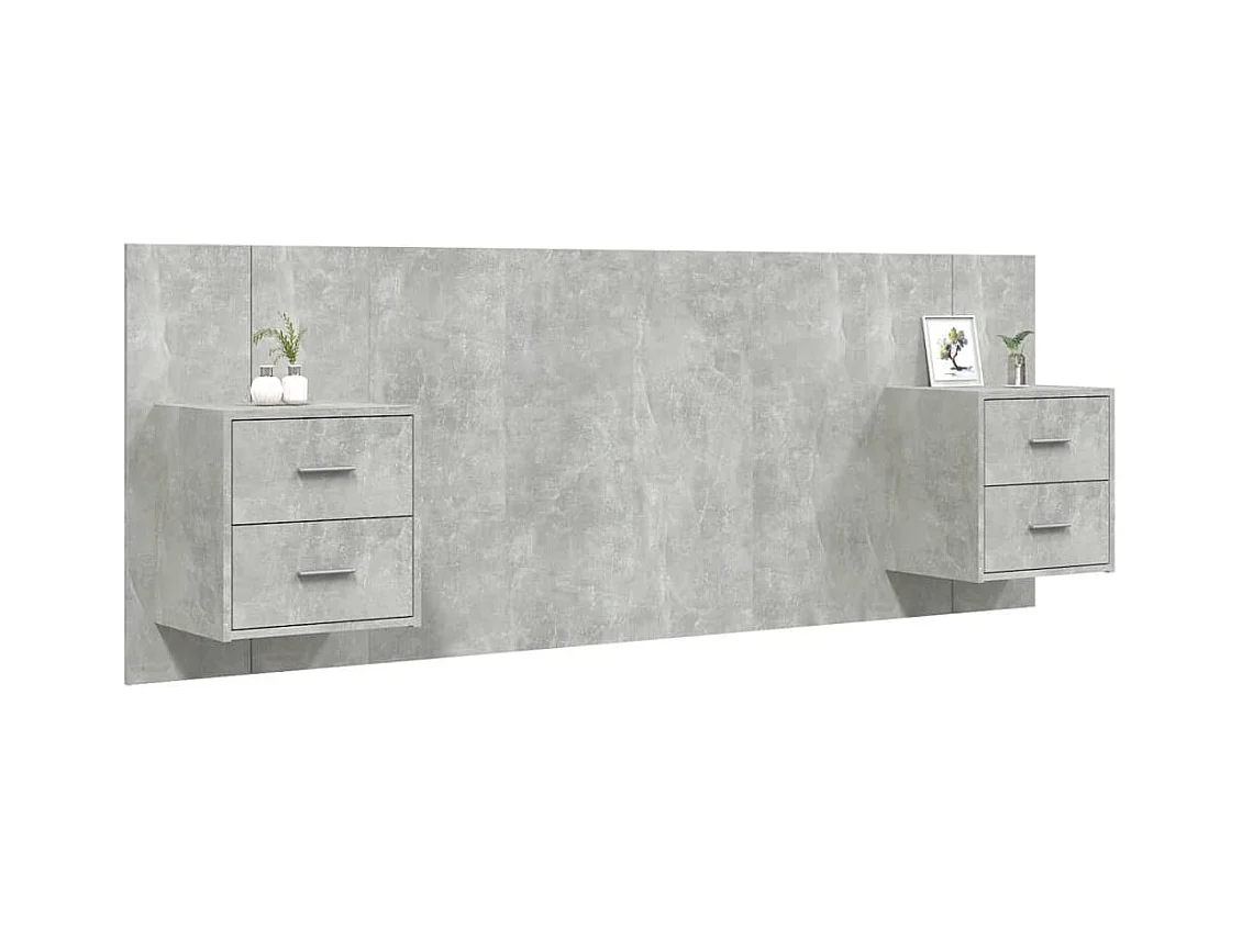 Tête de Lit avec rangement | Tête de lit avec armoires Gris béton Bois d'ingénierie