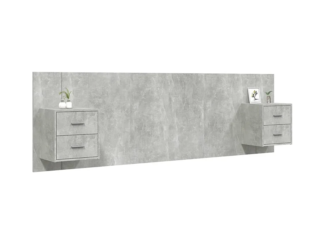 Tête de Lit avec rangement | Tête de lit avec armoires Gris béton Bois d'ingénierie