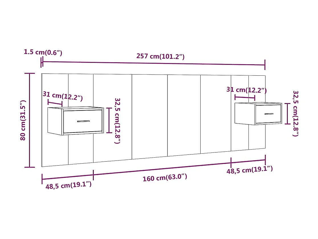 Tête de Lit avec rangement | Tête de lit avec armoires sonoma gris Bois d'ingénierie