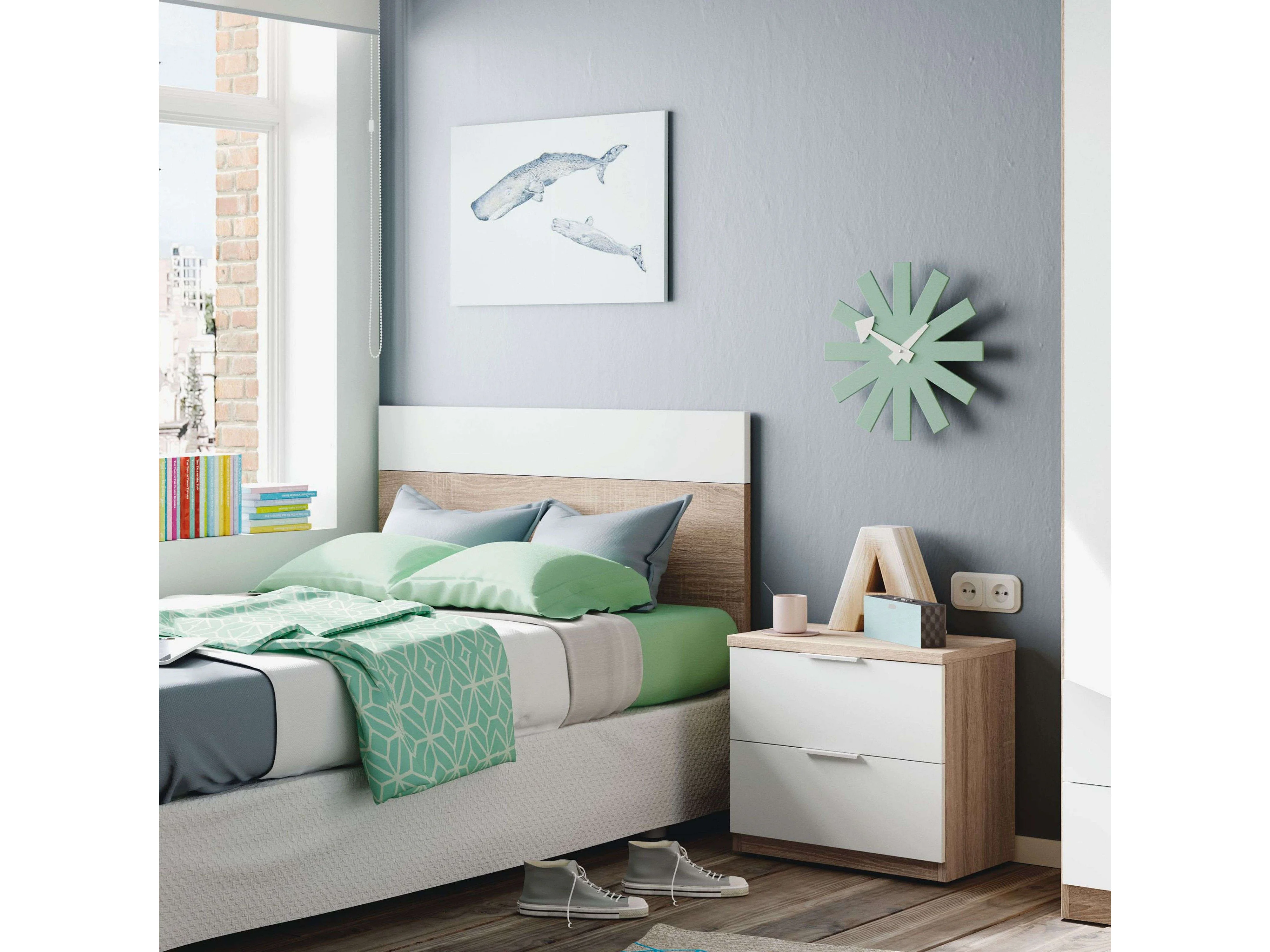 Tête de lit avec table Luca blanche et chêne