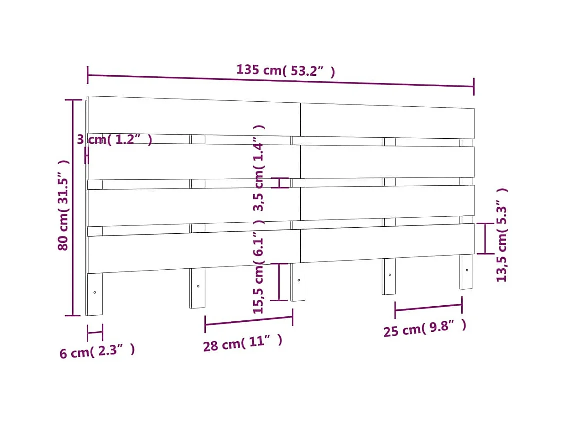Tête de lit Blanc 135x3x80 cm Bois massif de pin