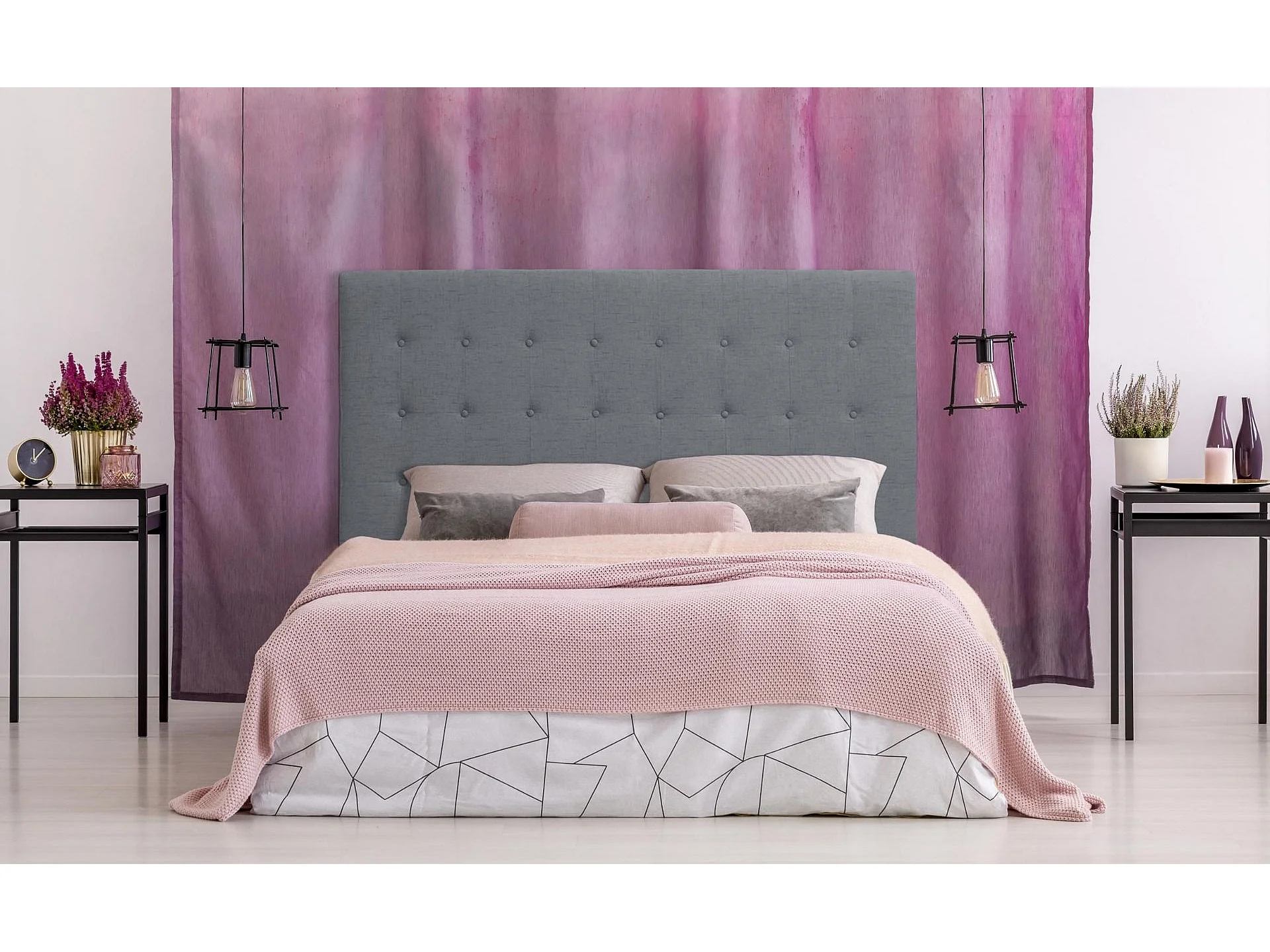 Tête de lit capitonnée en tissu gris L160 cm HALCIONA