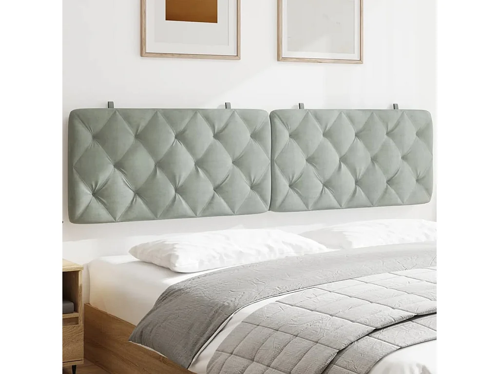 Tête de lit | Coussin de tête de lit | Tête de lit décoratif gris clair 200 cm velours