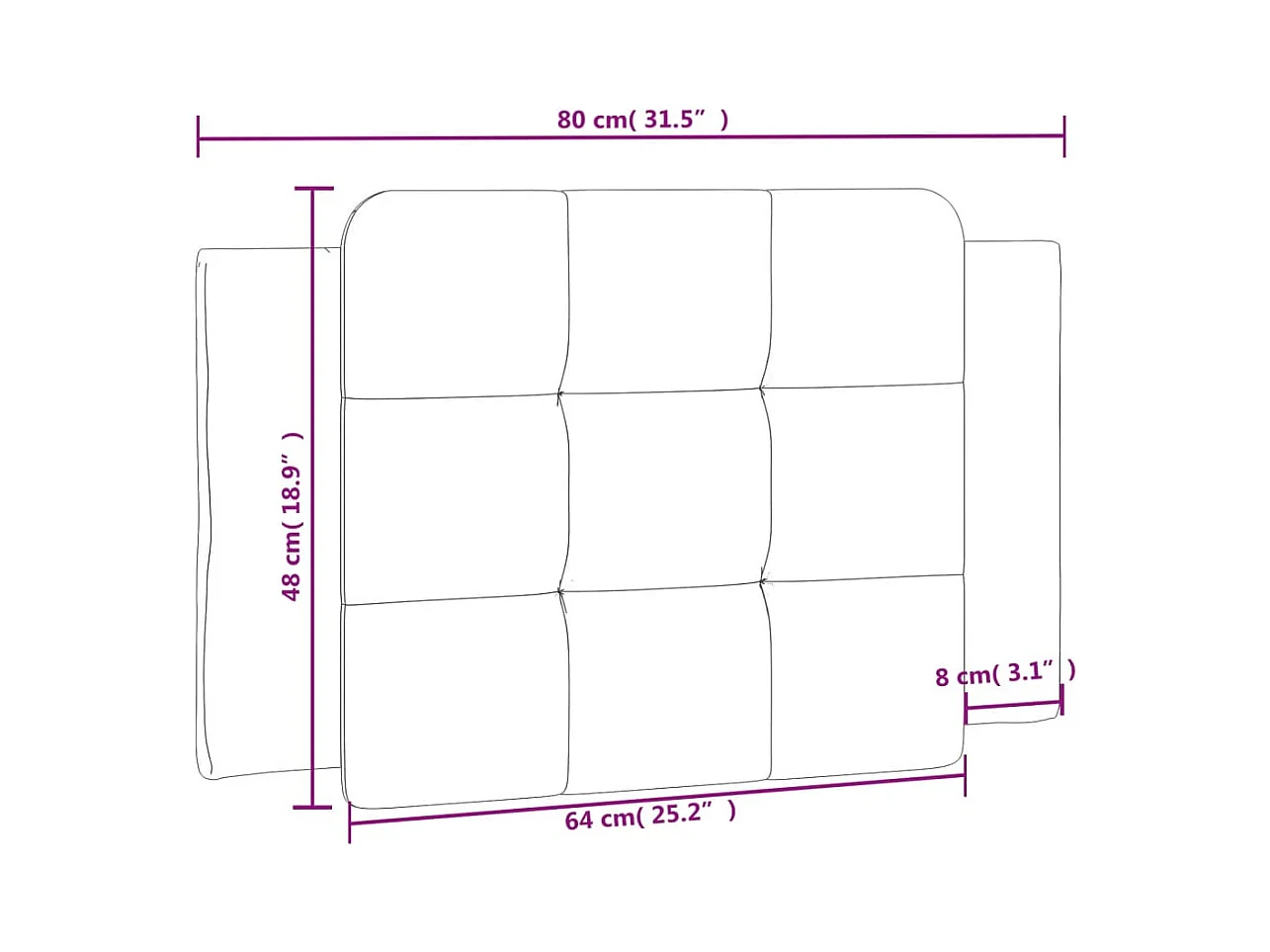 Tête de lit | Coussin de tête de lit | Tête de lit décoratif noir et blanc 80 cm similicuir