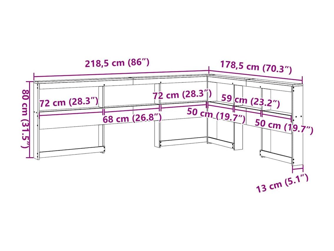 Tête de lit de bibliothèque en forme de L bois massif de pin