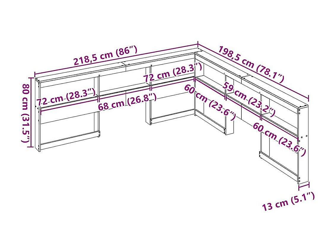 Tête de lit de bibliothèque en forme de L bois massif de pin