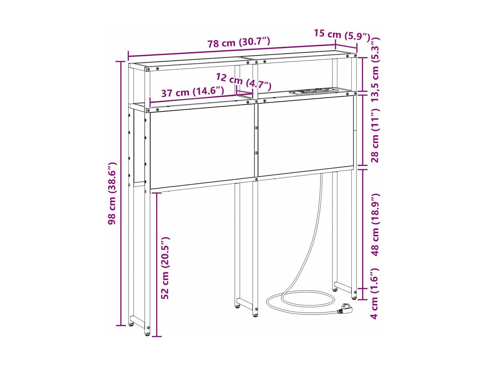 Tête de Lit de rangement | Panneau de tête pour lit Chêne fumé 75 cm Bois d'ingénierie