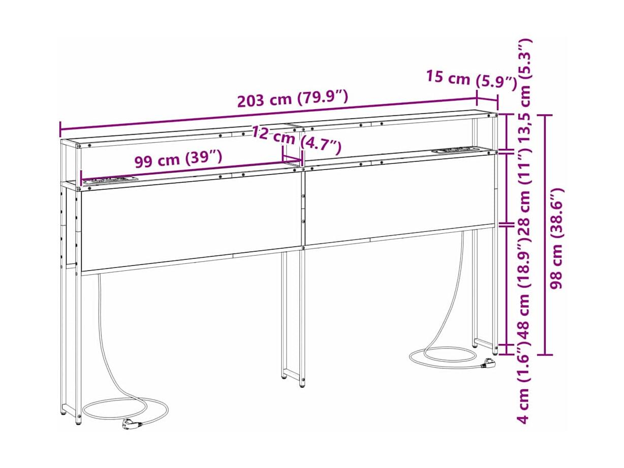 Tête de Lit de rangement | Panneau de tête pour lit Chêne marron 200 cm Bois d'ingénierie