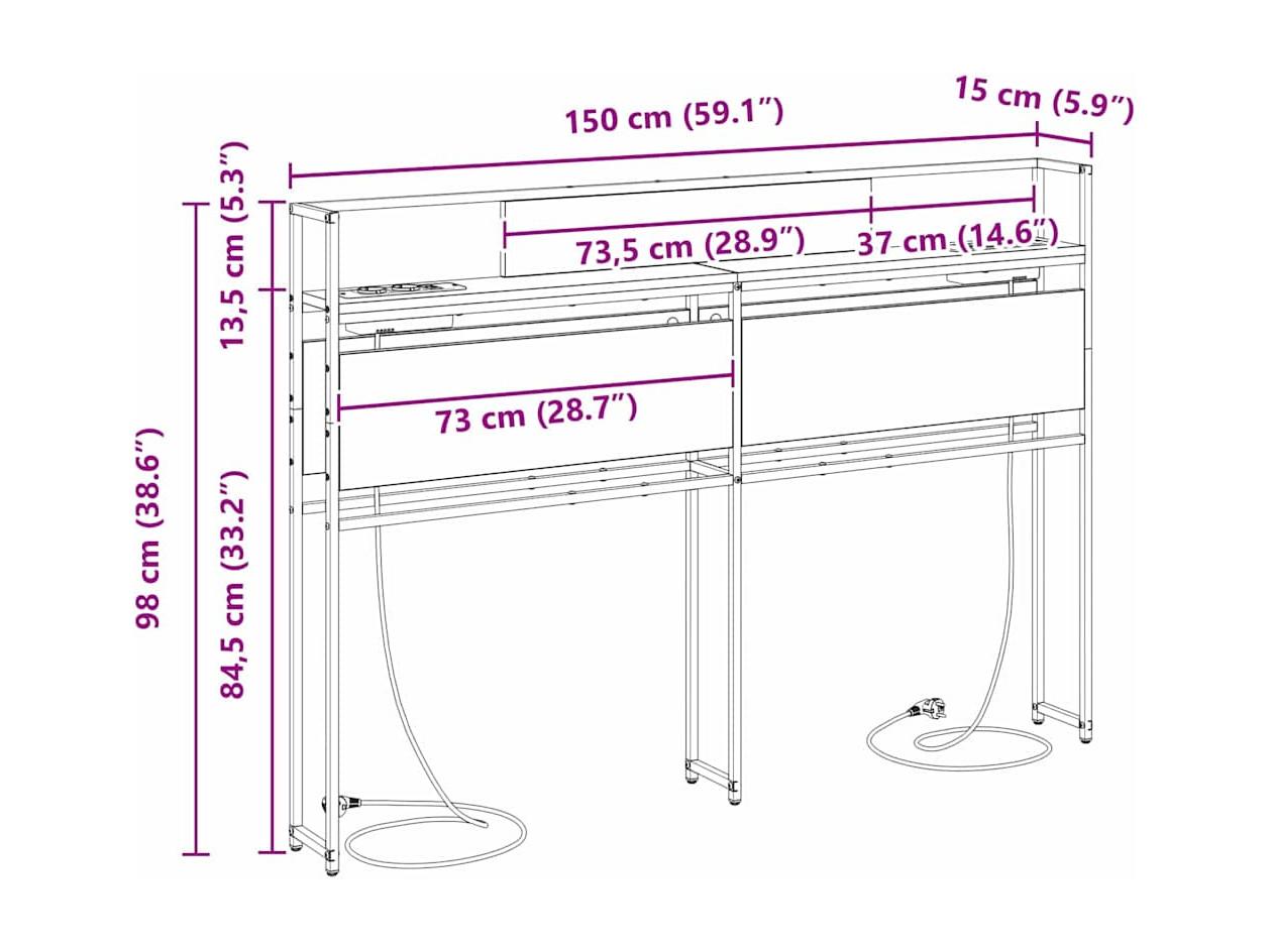 Tête de Lit de rangement | Panneau de tête pour lit Chêne noir 150 cm Bois d'ingénierie