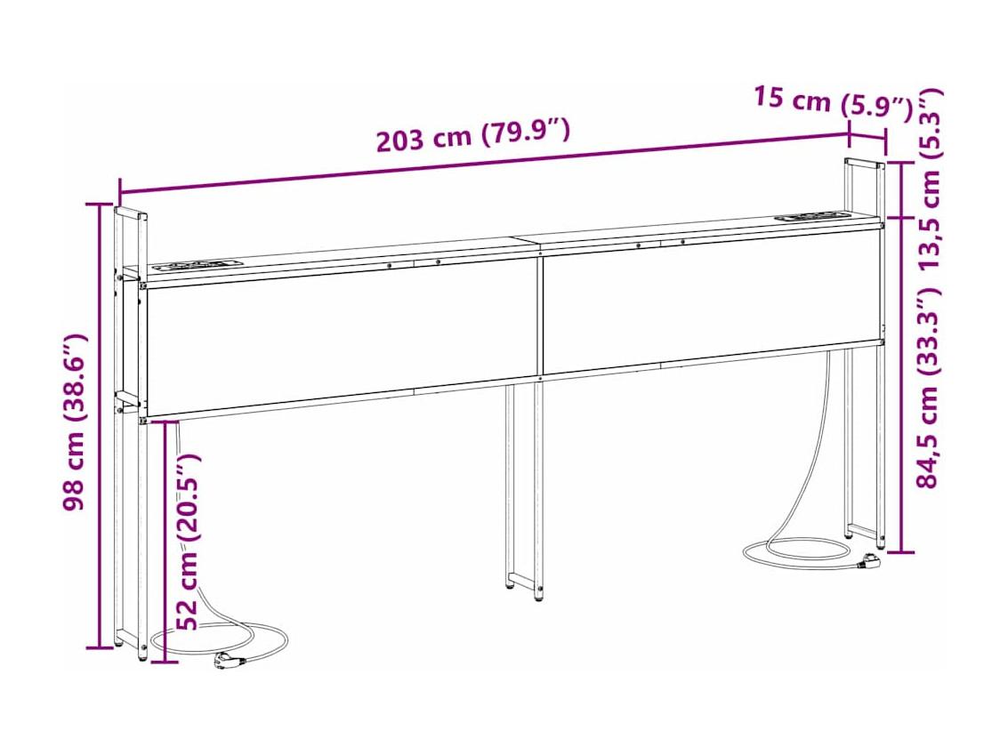 Tête de Lit de rangement | Panneau de tête pour lit Chêne noir 200 cm Bois d'ingénierie