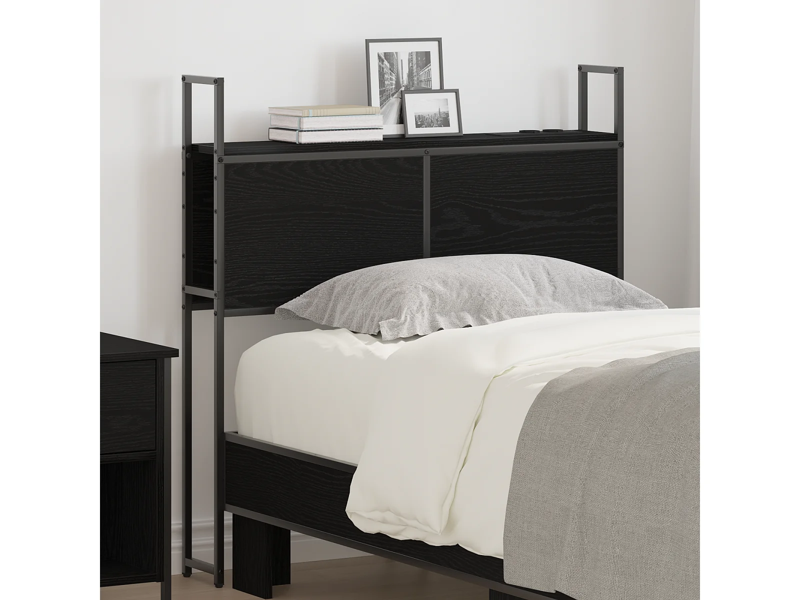 Headboard de Rangement avec Station de Charge Chêne noir 90 cm