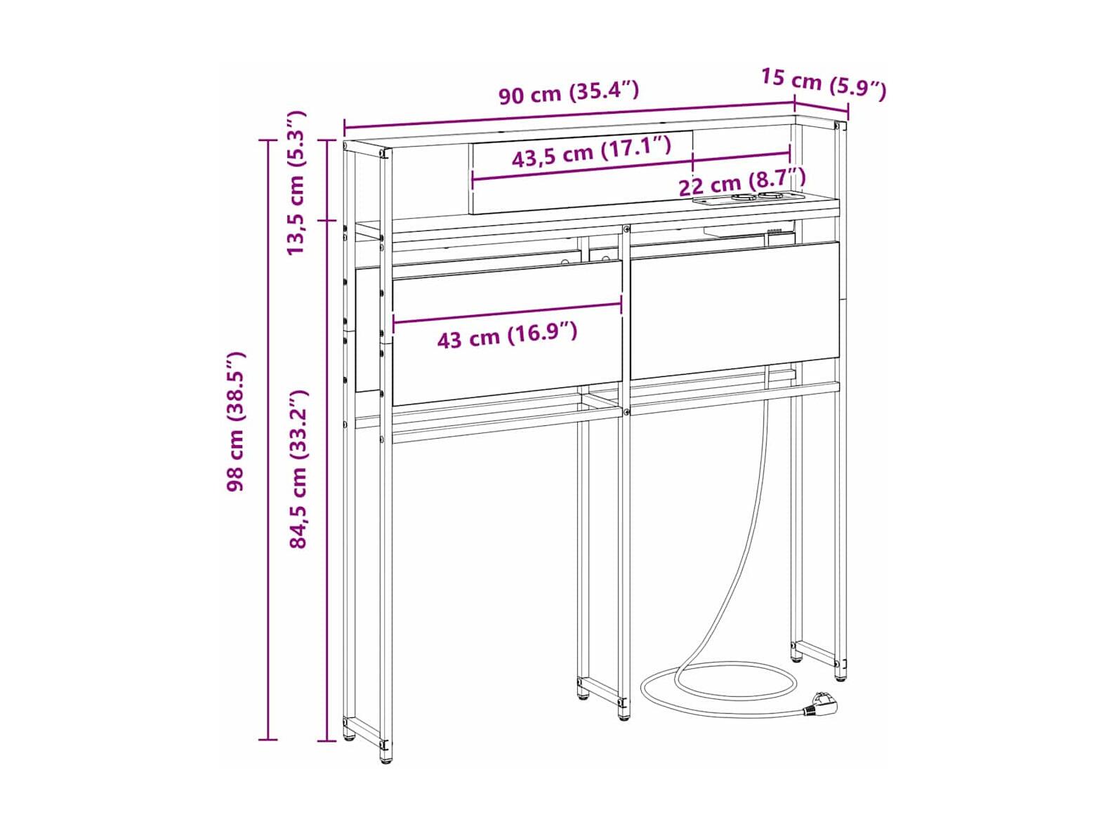 Tête de Lit de rangement | Panneau de tête pour lit Chêne noir 90 cm Bois d'ingénierie