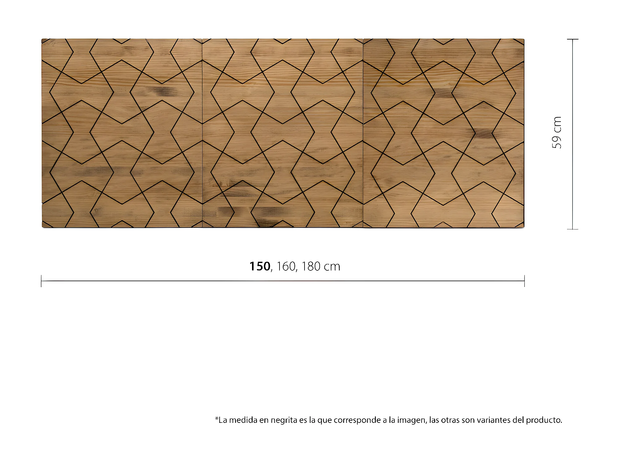 Tête de lit en bois massif de pin. Modèle Optique 180X60x1,8cm.