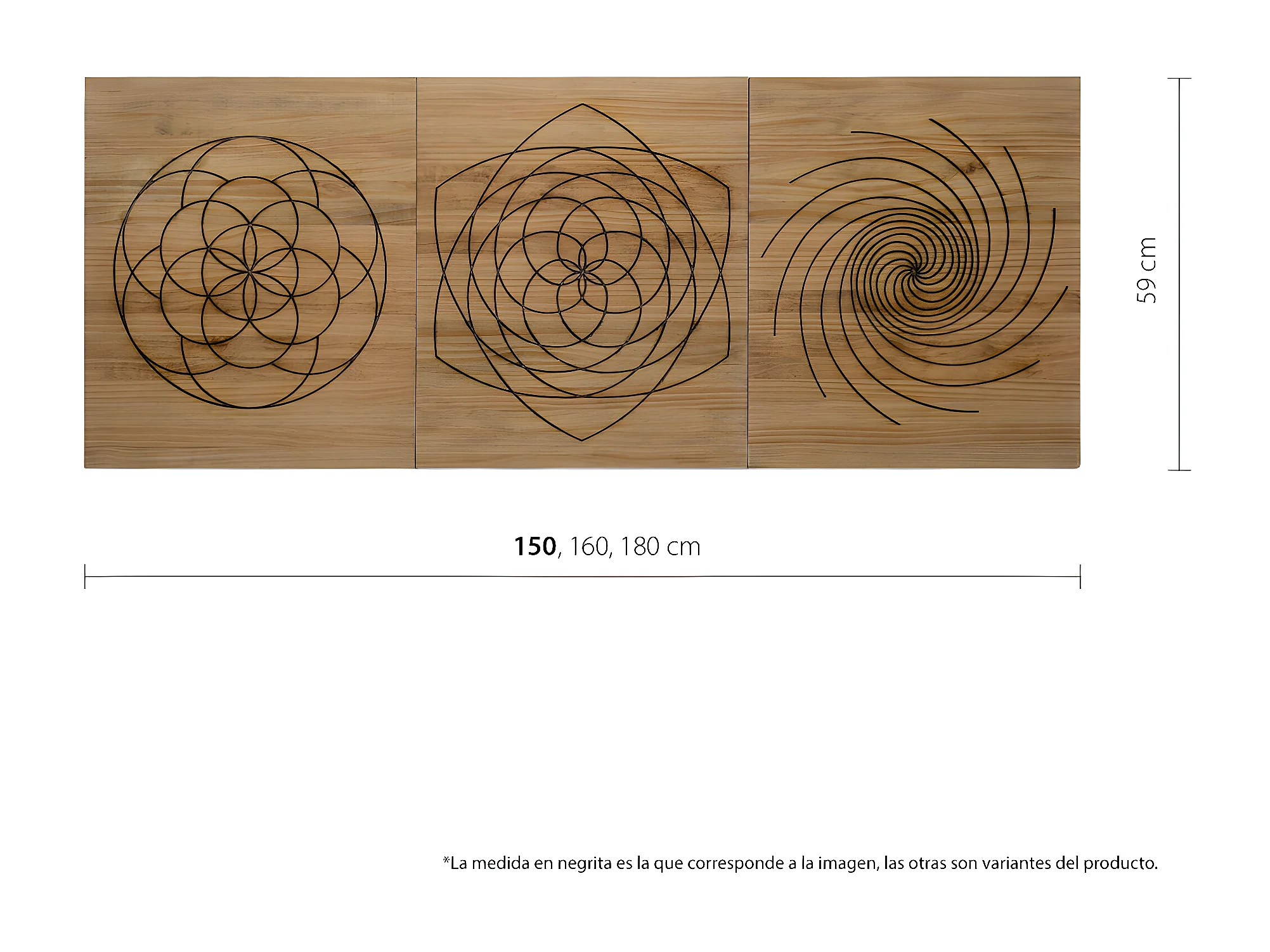 Tête de lit en bois massif de pin. Modèle Symétrie 150X60x1,8cm.