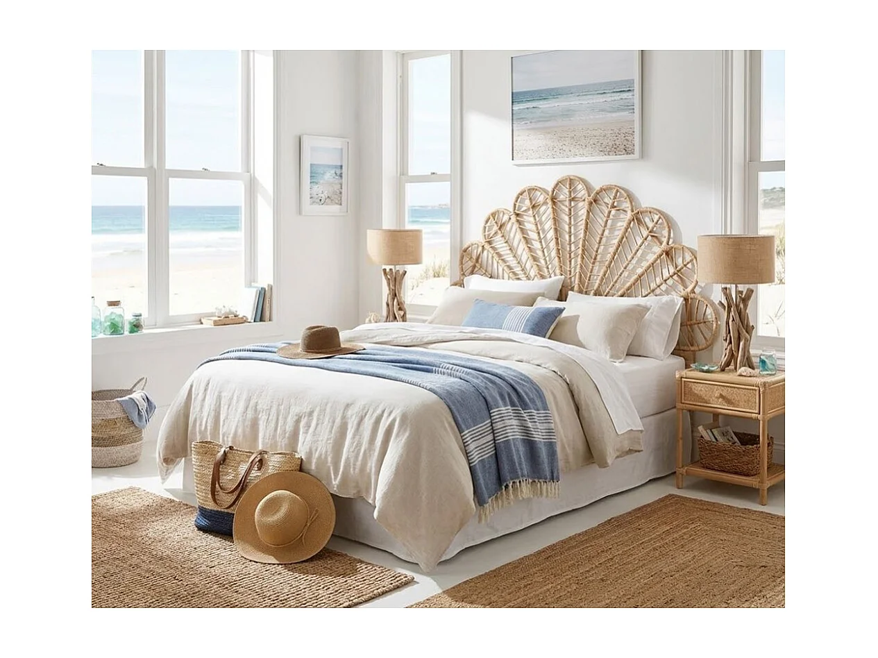 Tête de lit en rotin naturel Sola Sommier 160 cm