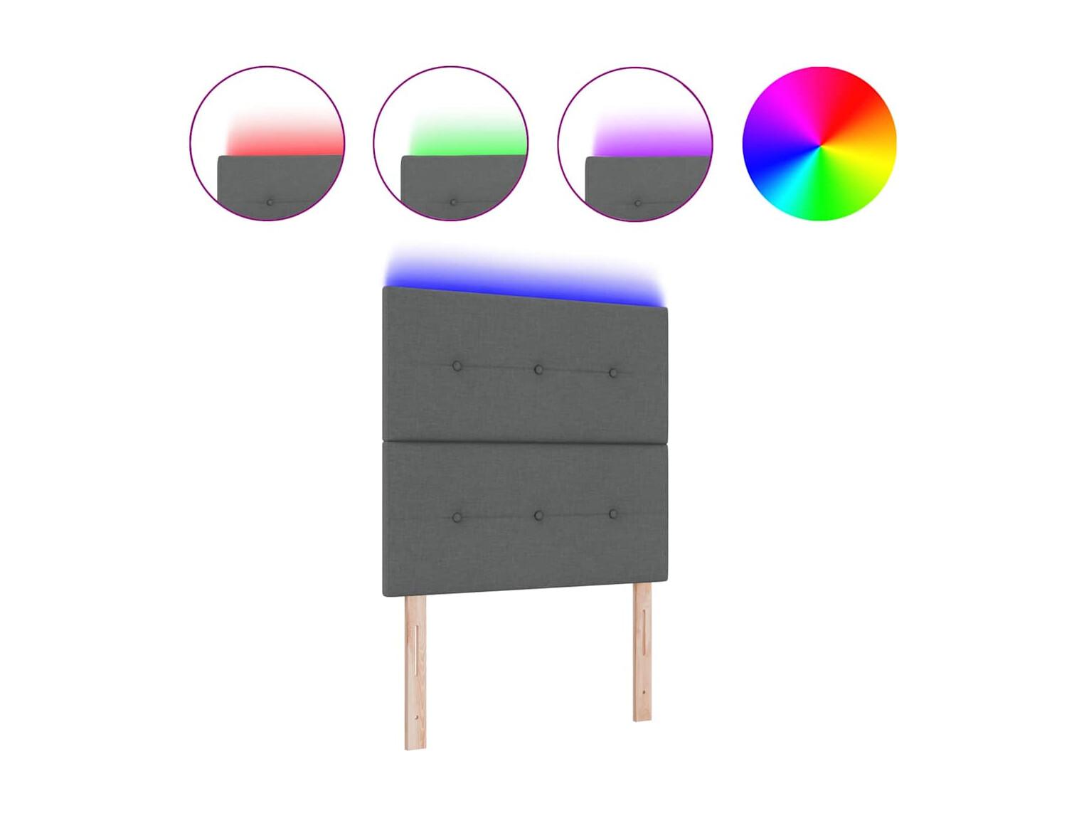 Tête de lit LED avec des lumières à LED Gris foncé 90 cm tissu