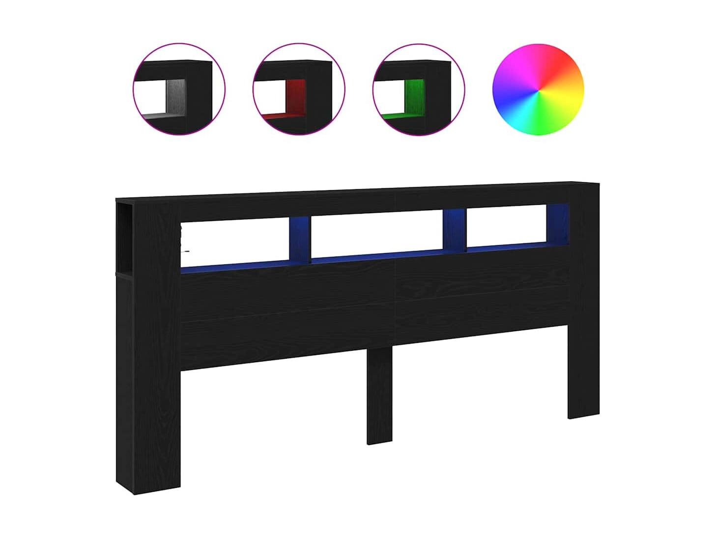Tête de lit LED avec étagère Chêne noir 220 x 18.5 x 103.5 cm