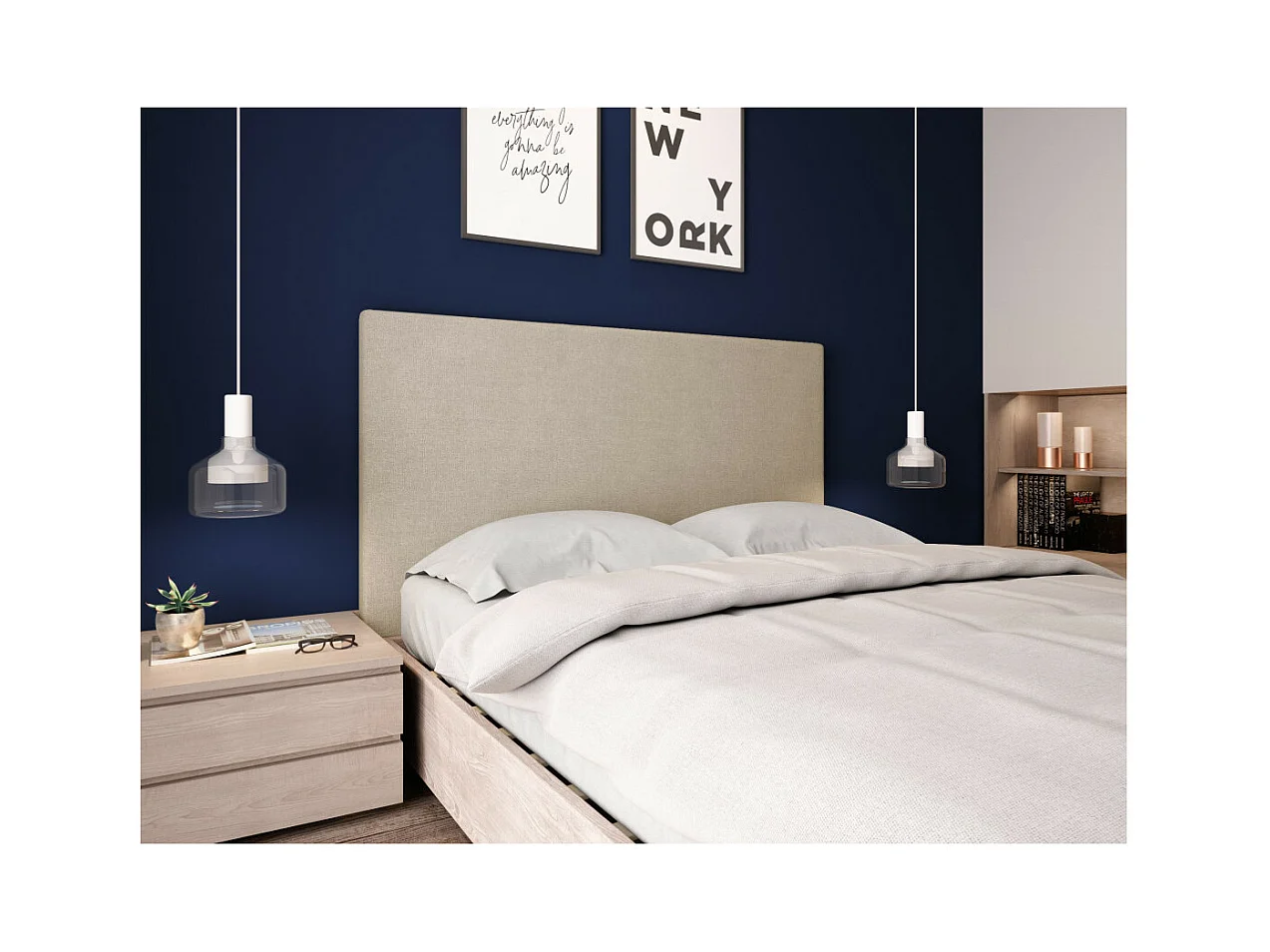 Tête de lit lisse en tissu NUMA - Beige, Largeur - 160 cm