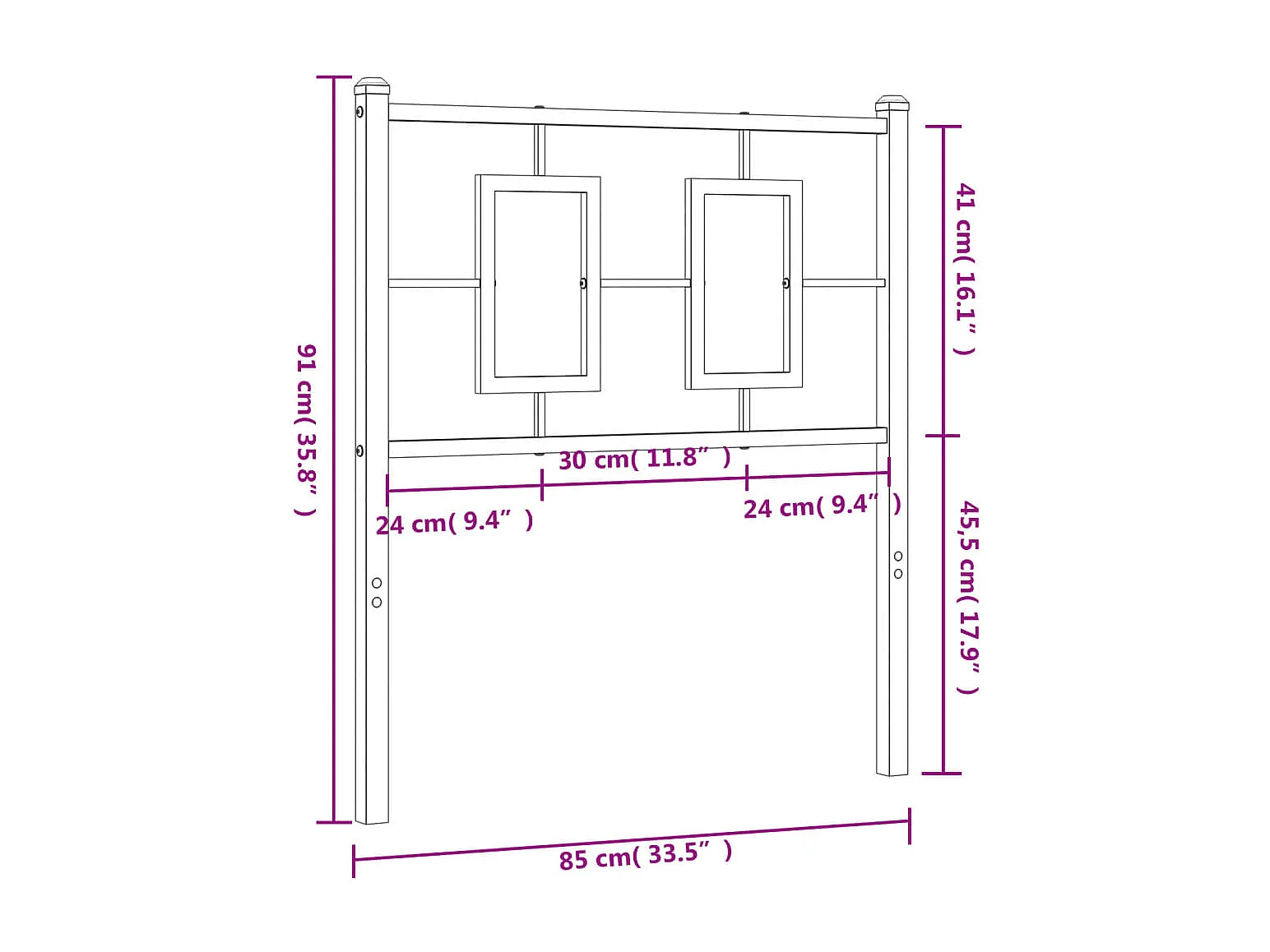 Tête de lit métal noir 80 cm