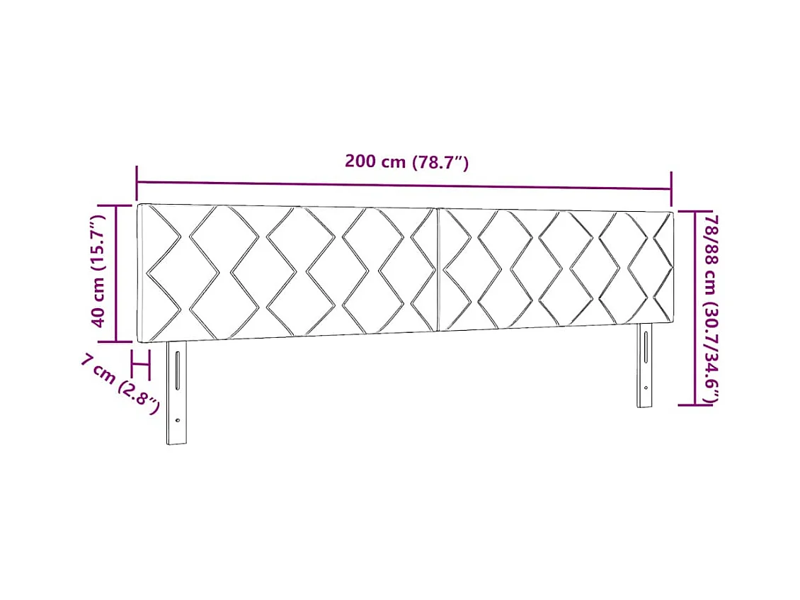 Tête de Lit | Panneau de tête pour lit Moderne à LED Noir 200x5x78/88 cm Velours