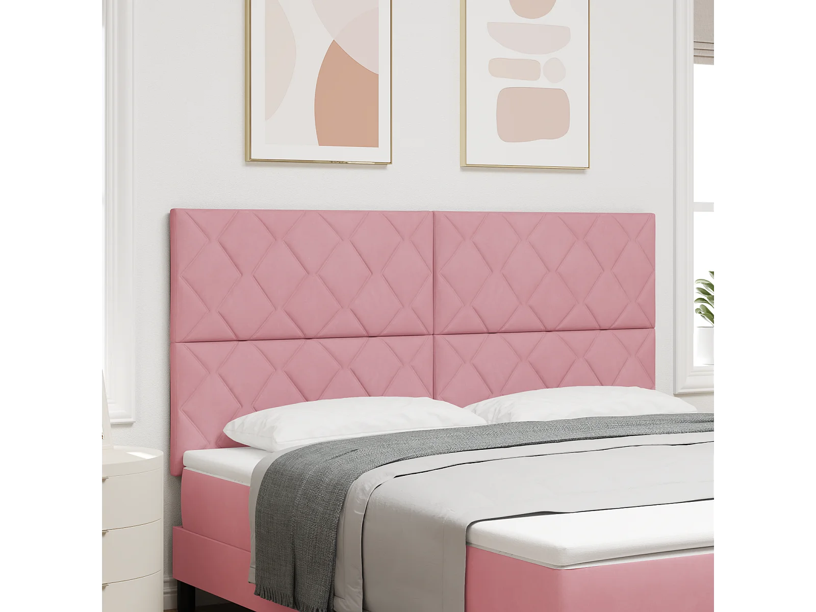 Tête de lit Montage mural | Panneau de tête pour lit Moderne Géométrique Rose 180 cm Velours
