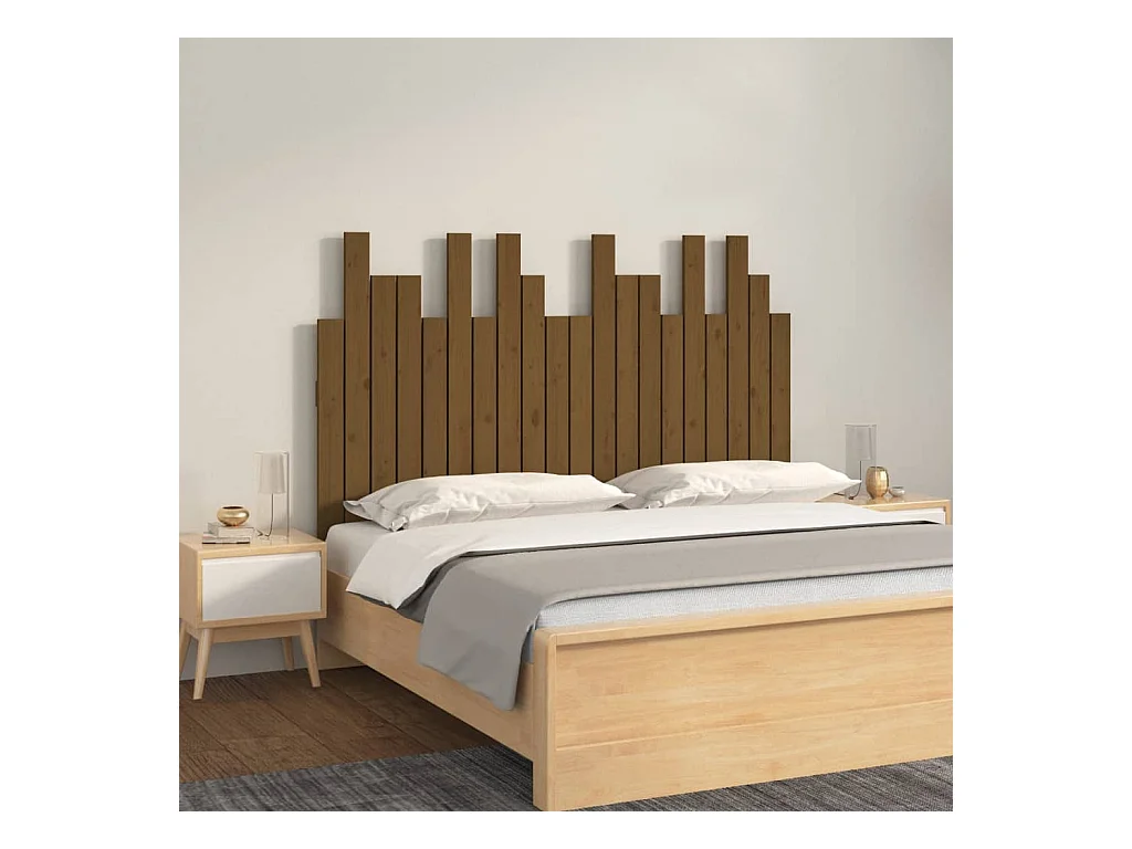 Tête de lit murale Marron miel 127,5x3x110cm Bois massif de pin POI73433 BonneVie Meuble