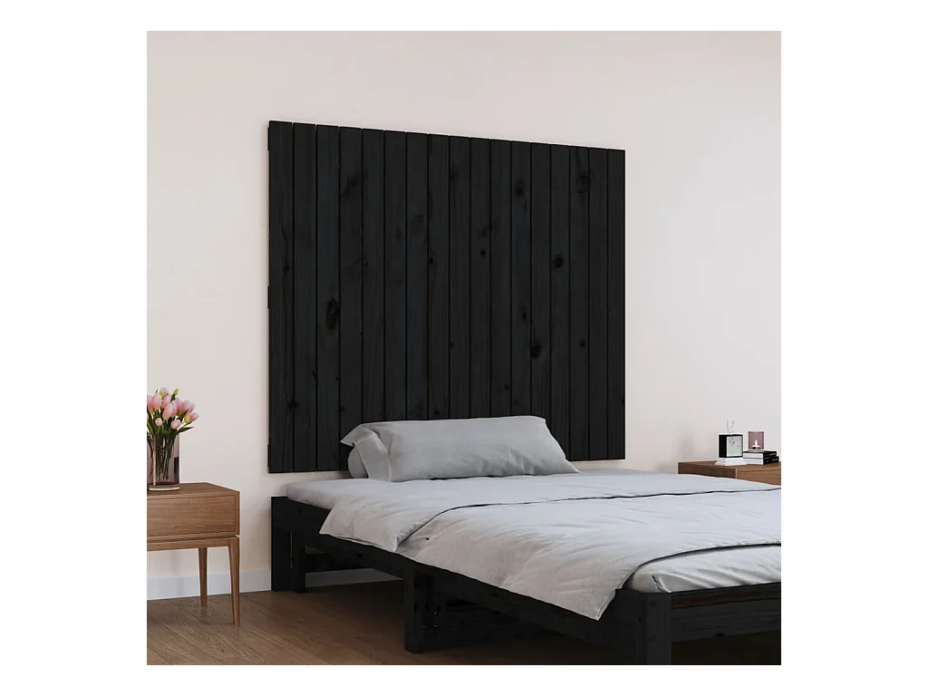Tête de lit murale | Panneau de tête pour lit Moderne Noir 108x3x90 cm Bois massif de pin
