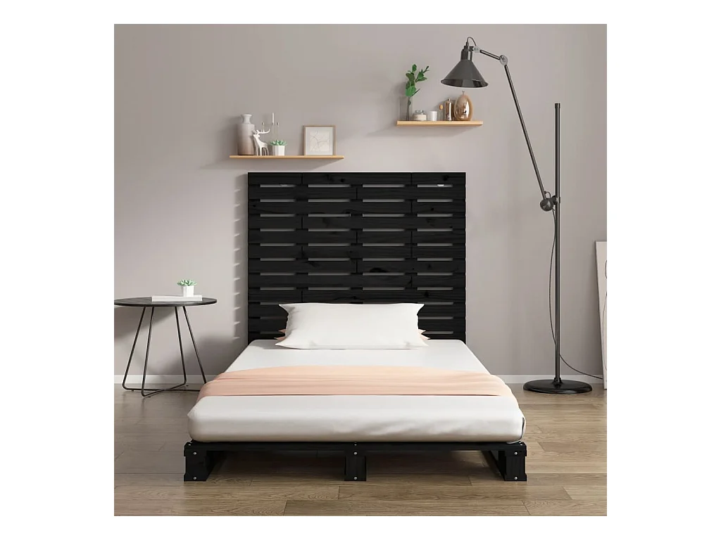 Tête de Lit | Panneau de tête pour lit Moderne Noir 141x3x80,5 cm Bois massif de pin