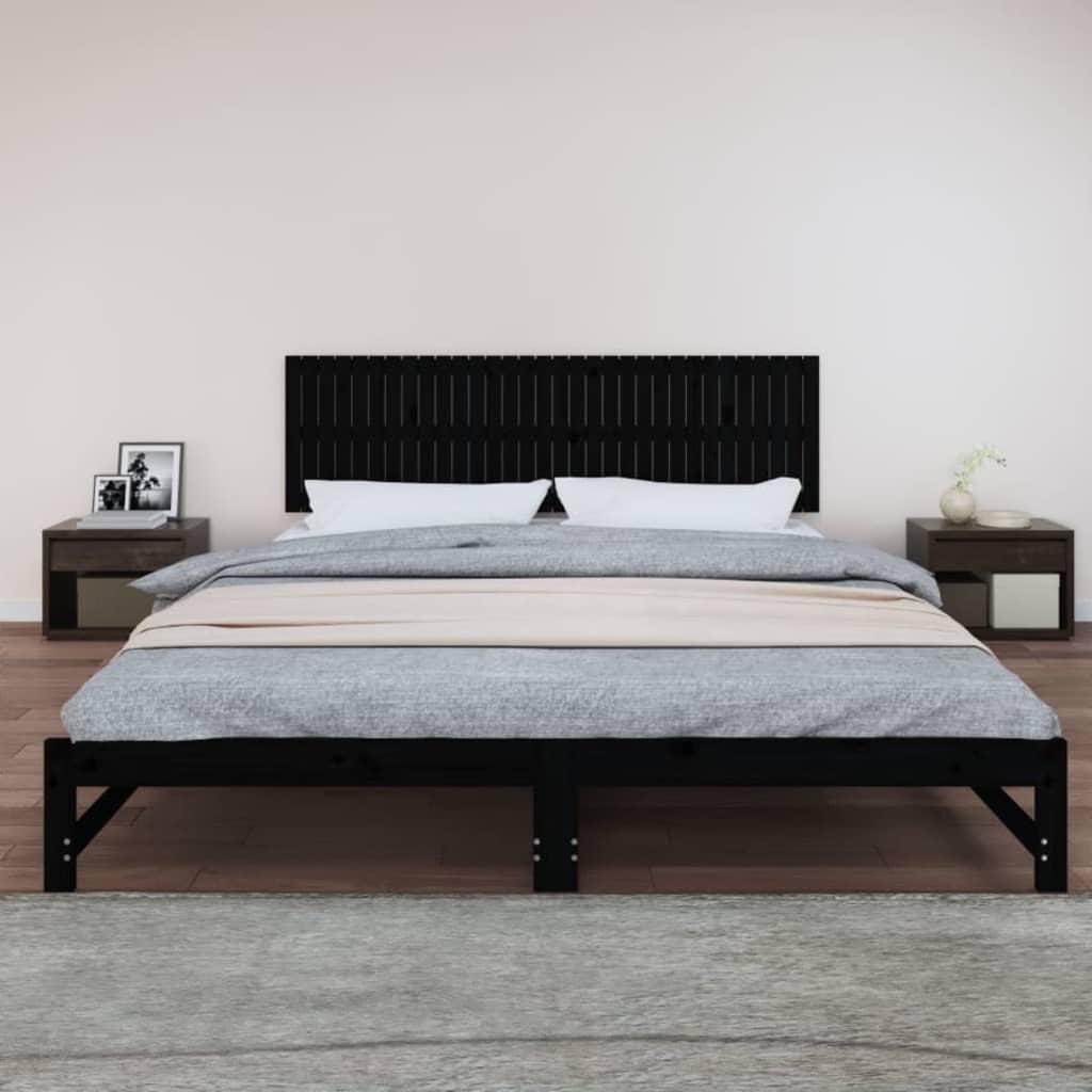 Tête de lit murale | Panneau de tête pour lit Moderne Noir 204x3x60 cm Bois massif de pin