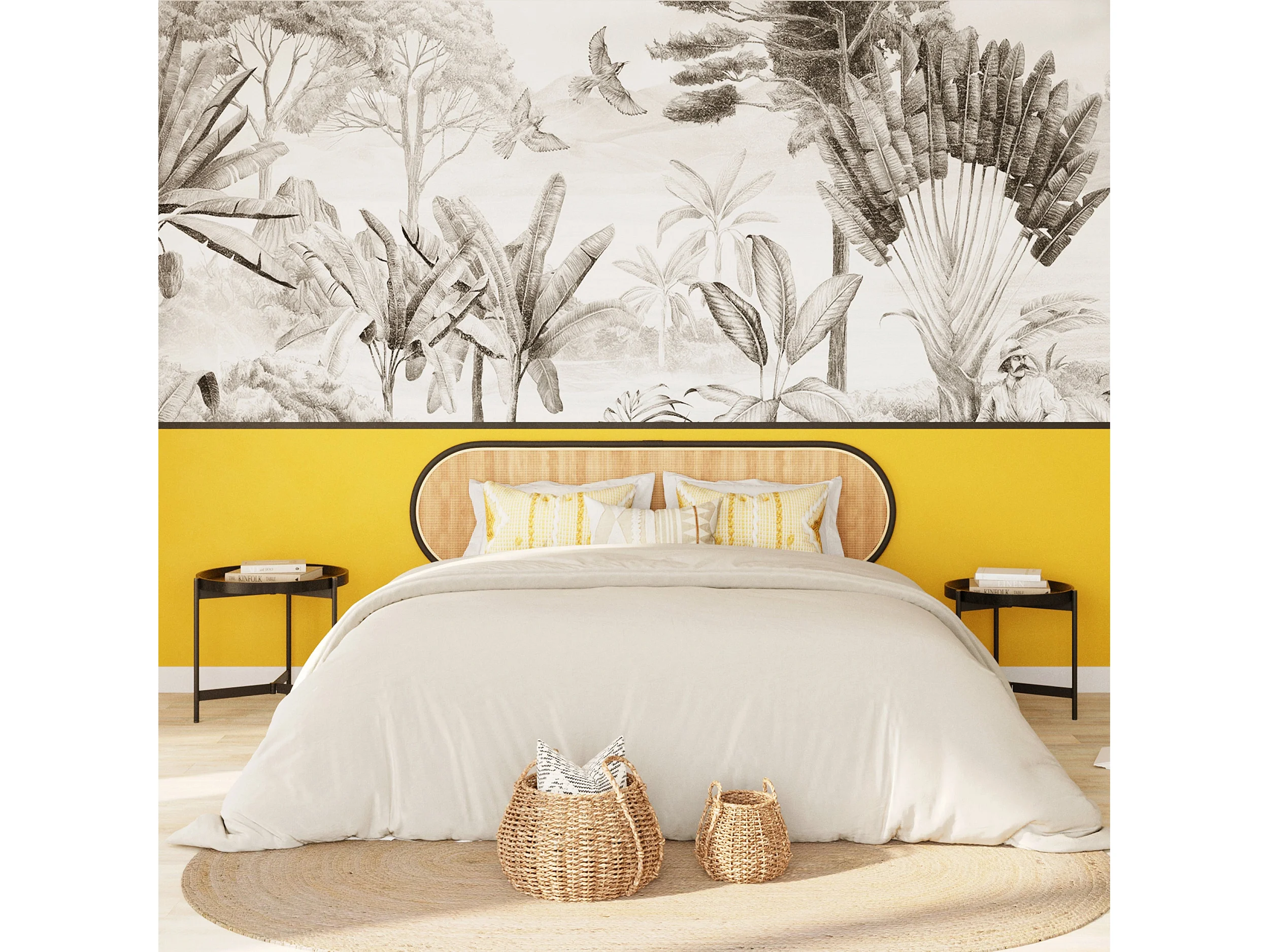 Tête de lit en rotin naturel et noir 160 cm - Navahino