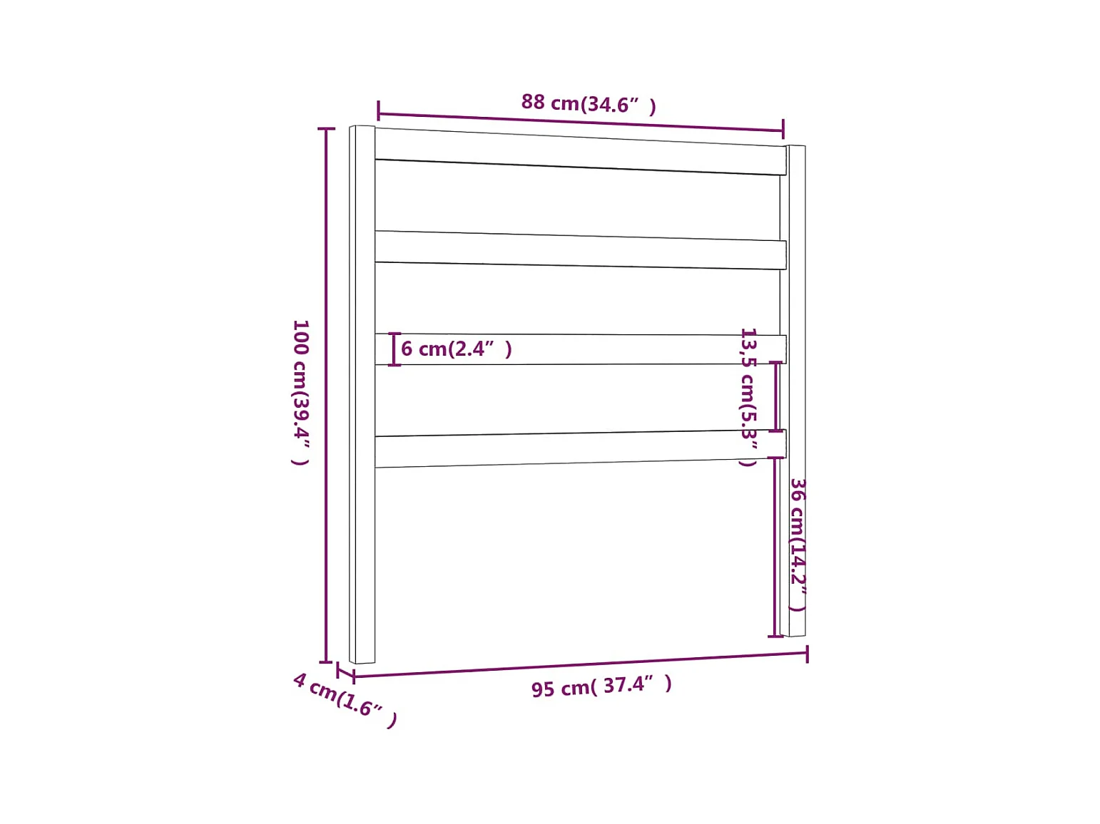 Tête de lit Noir 95x4x100 cm Bois massif de pin