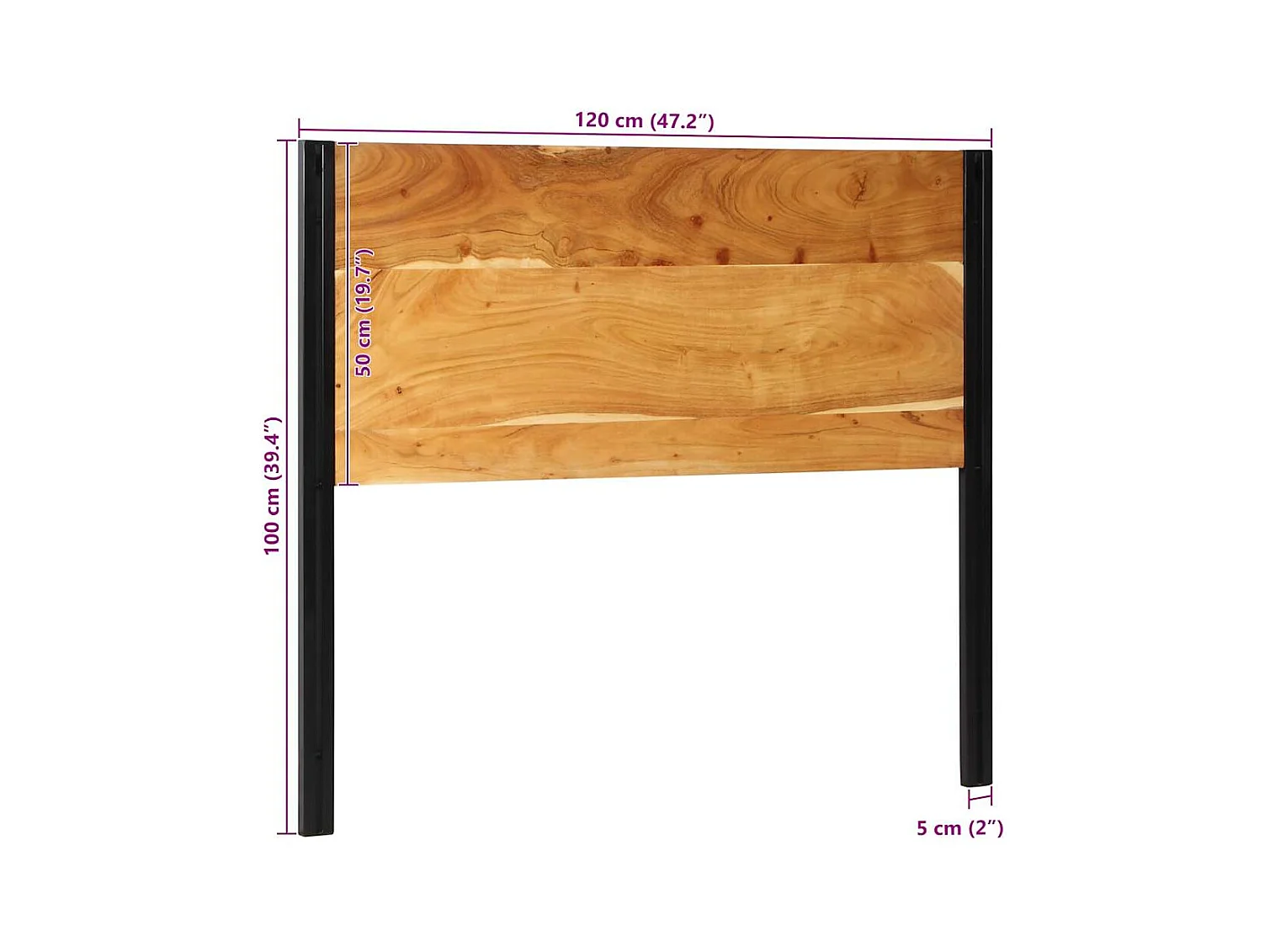 Tête de Lit | Panneau de tête pour lit Moderne 120 cm bois massif d'acacia et fer