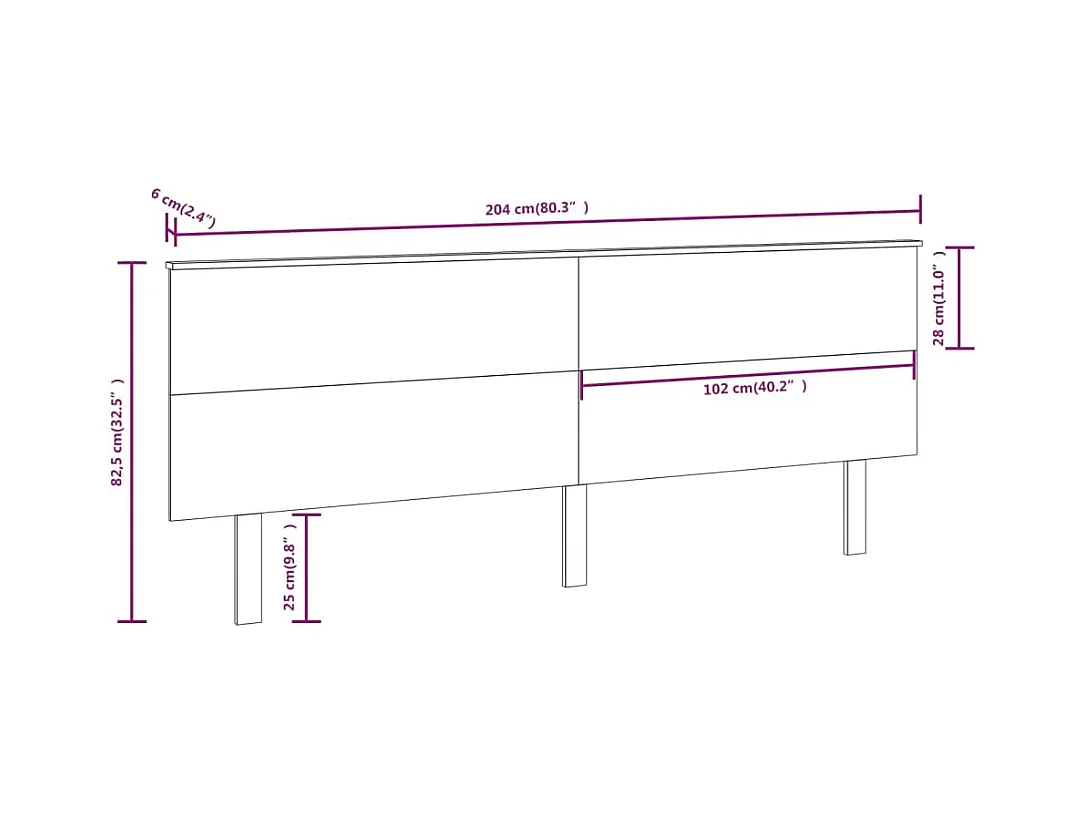 Tête de lit murale | Panneau de tête pour lit Moderne 204x3x80 cm Bois massif de pin