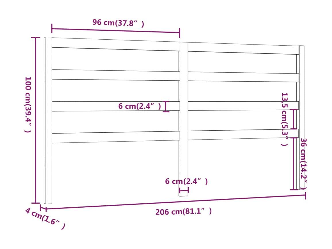 Tête de Lit | Panneau de tête pour lit Moderne 205,5x4x100 cm Bois massif de pin