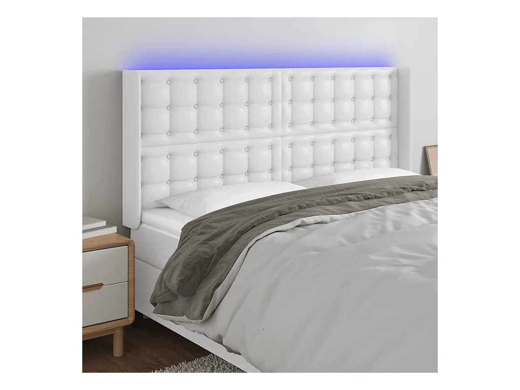 Tête de Lit | Panneau de tête pour lit Moderne à LED Blanc 147x16x118/128 cm Similicuir