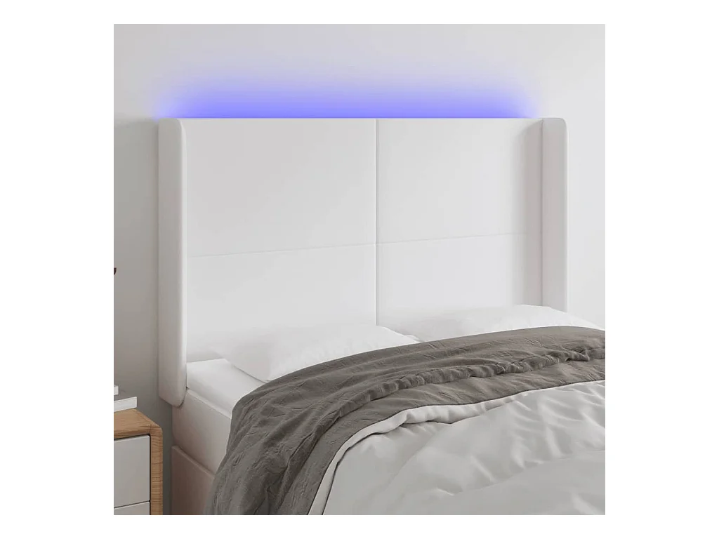 Tête de Lit | Panneau de tête pour lit Moderne à LED Blanc 147x16x118/128 cm Similicuir