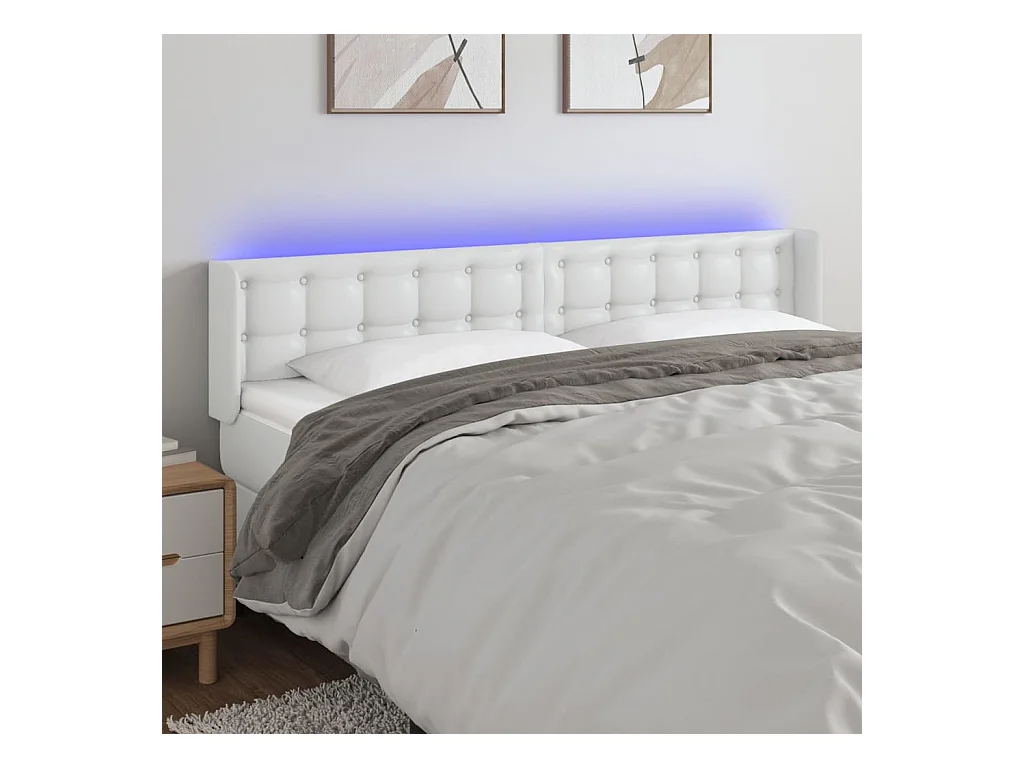 Tête de Lit | Panneau de tête pour lit Moderne à LED Blanc 183x16x78/88 cm Similicuir