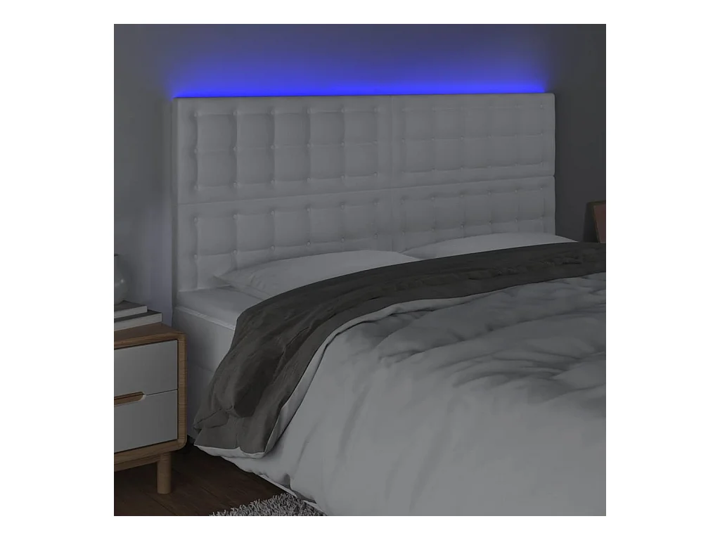 Tête de Lit | Panneau de tête pour lit Moderne à LED Blanc 180x5x118/128 cm Similicuir