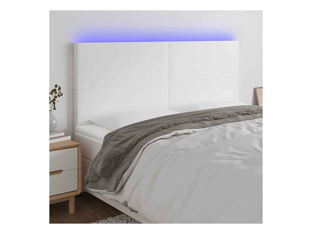 Tête de Lit | Panneau de tête pour lit Moderne à LED Blanc 180x5x118/128 cm Similicuir