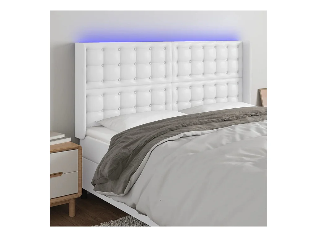 Tête de Lit | Panneau de tête pour lit Moderne à LED Blanc 203x16x118/128 cm Similicuir