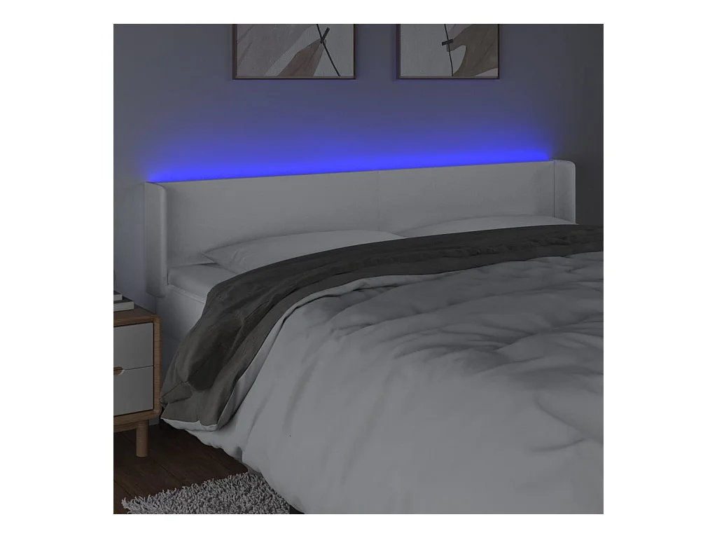 Tête de Lit | Panneau de tête pour lit Moderne à LED Blanc 163x16x78/88 cm Similicuir