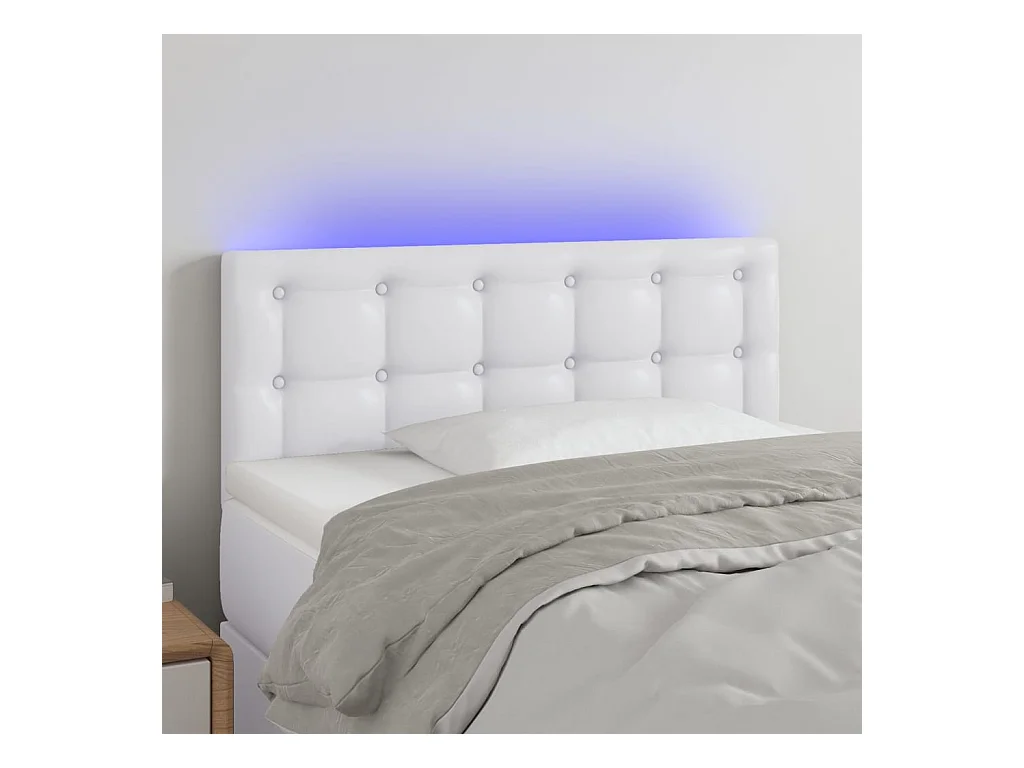 Tête de Lit | Panneau de tête pour lit Moderne à LED Blanc 90x5x118/128 cm Similicuir