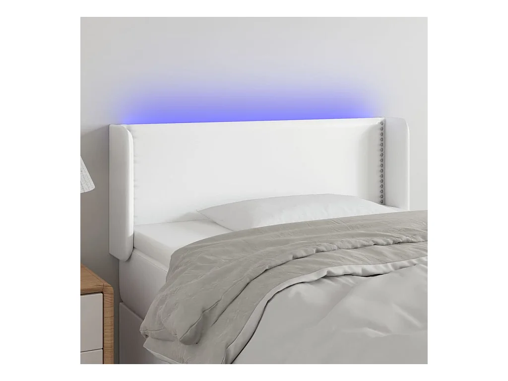 Tête de Lit | Panneau de tête pour lit Moderne à LED Blanc 93x16x118/128 cm Similicuir
