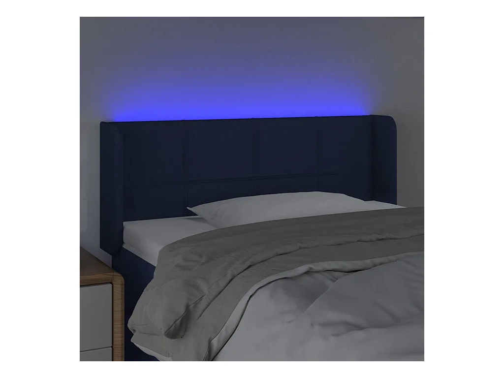 Tête de Lit | Panneau de tête pour lit Moderne à LED Bleu 103x16x118/128 cm Tissu