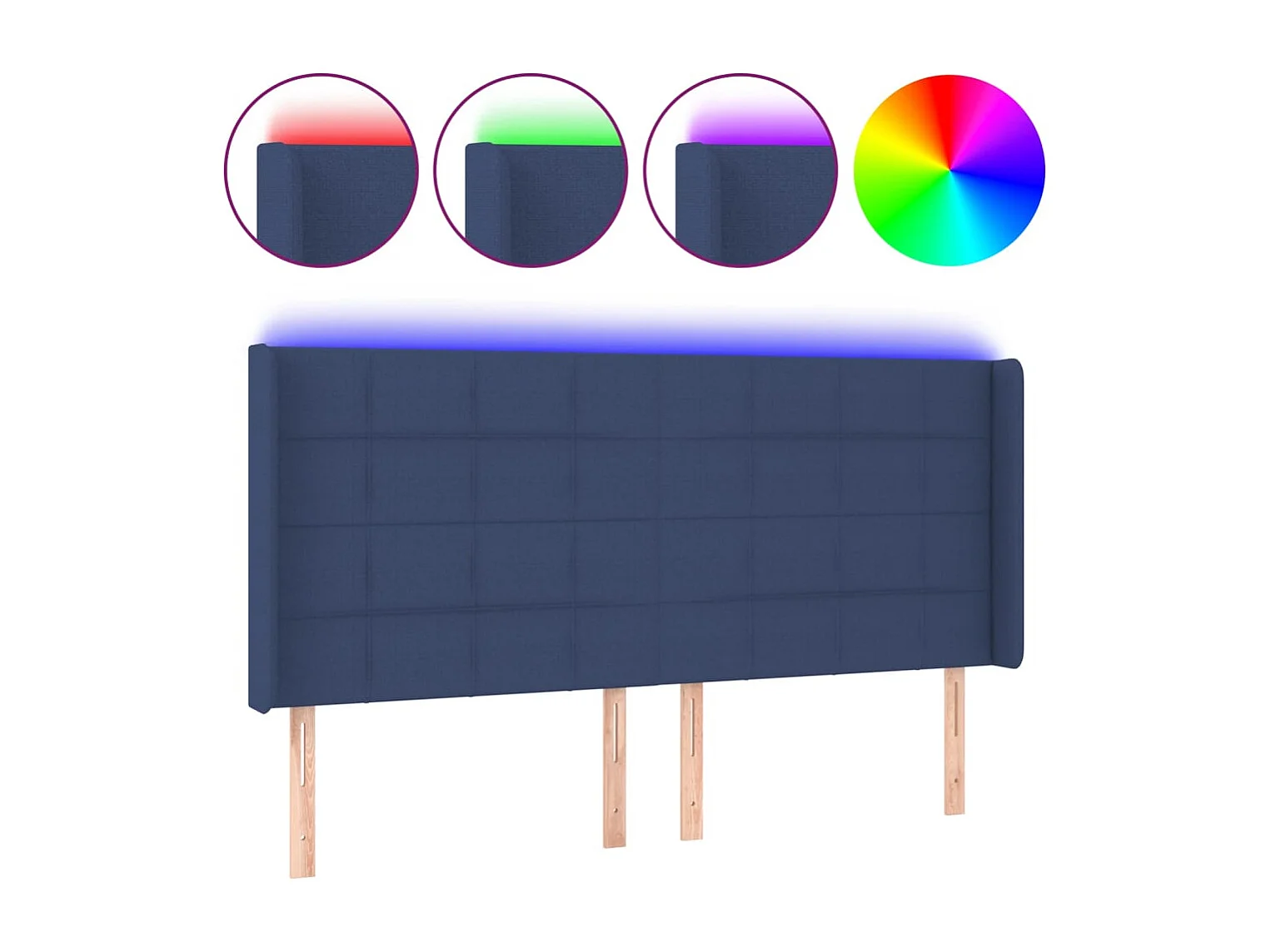 Tête de Lit | Panneau de tête pour lit Moderne à LED Bleu 163x16x118/128 cm Tissu