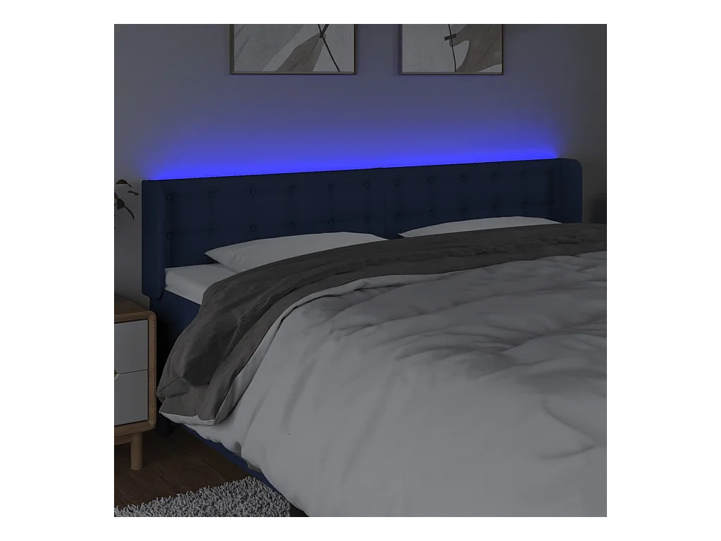 Tête de Lit | Panneau de tête pour lit Moderne à LED Bleu 183x16x78/88 cm Tissu